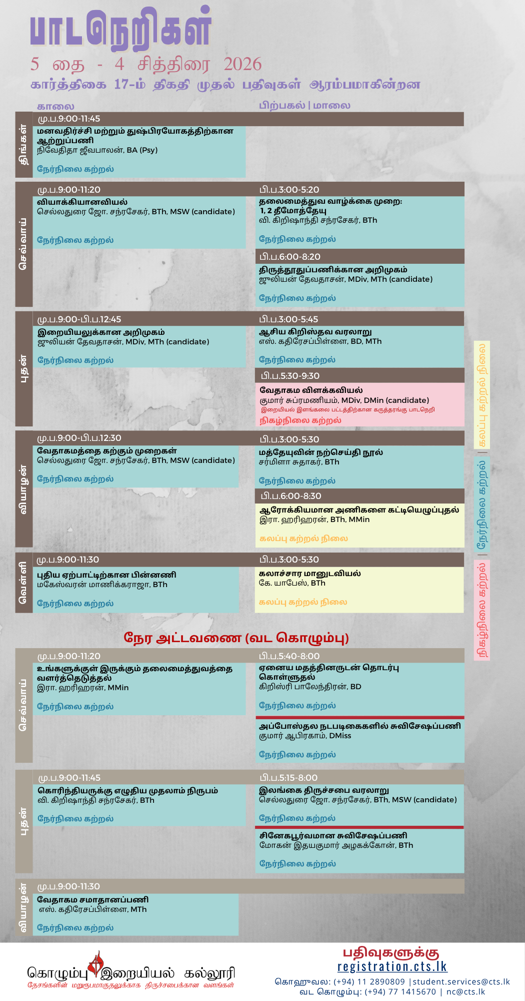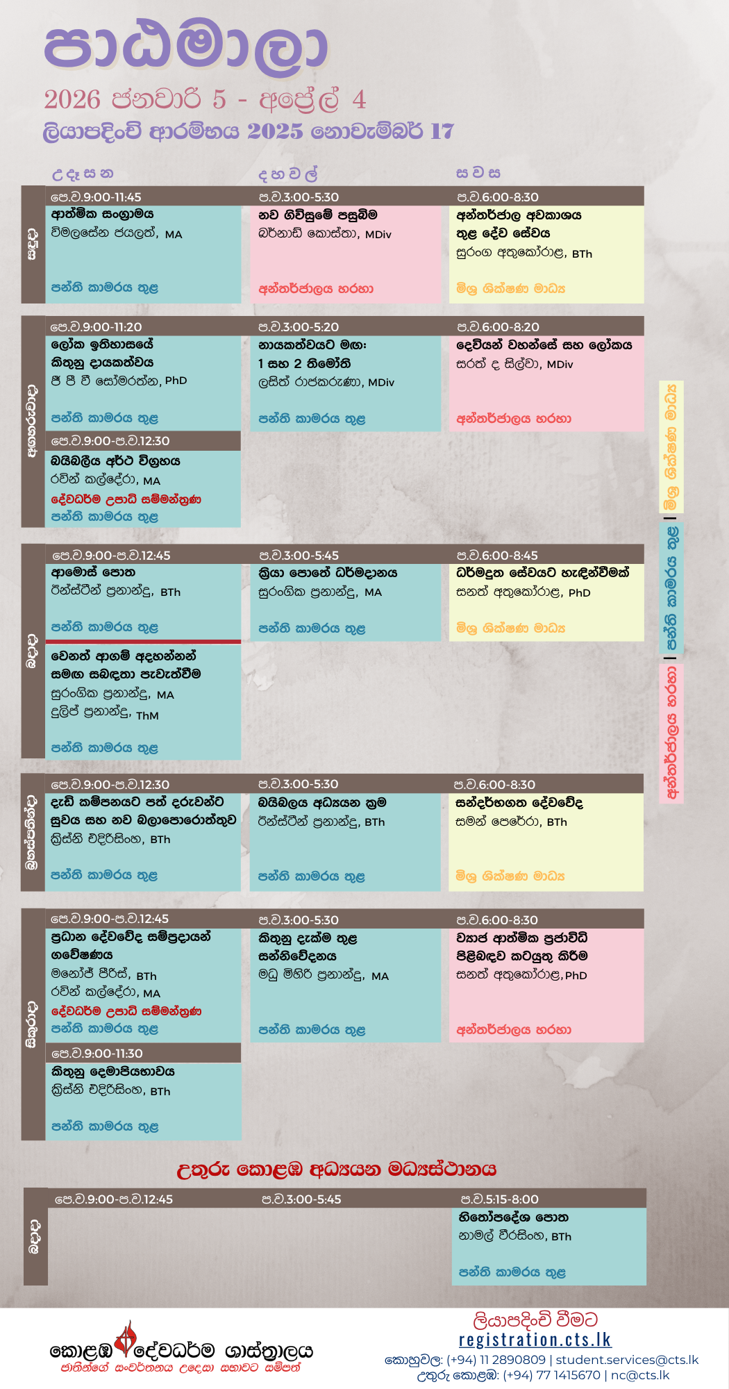 On Site | Online | Hybrid Check below for more information on the English, Sinhala and Tamil Courses. Registration Inquiries: (+94) 11 2890809 English Courses Scholarships Register Now Course Catalogue Sinhala Courses ශිෂ්යත්ව ලියාපදිංචි වන්න පාඨමාලා නාමාවලිය Tamil Courses புலமைப்பரிசில் இப்பொழுதே பதிவுசெய்யுங்கள் பாட நெறி வழிகாட்டி General Information තොරතුරු பொதுவான தகவல்கள்
